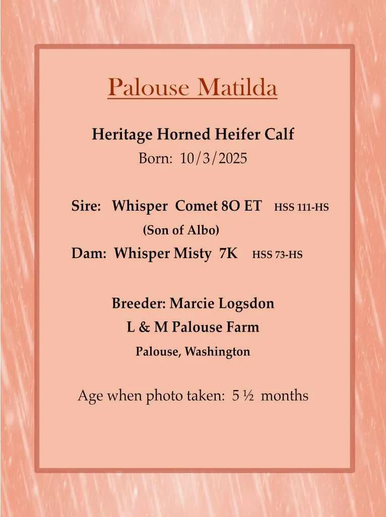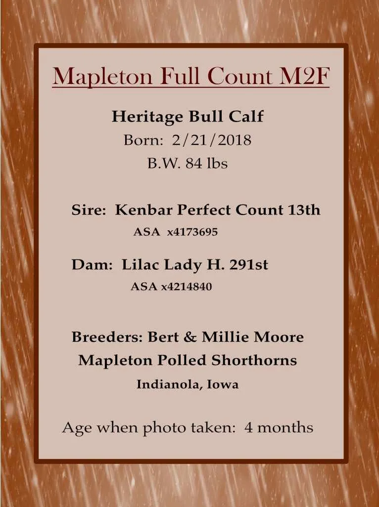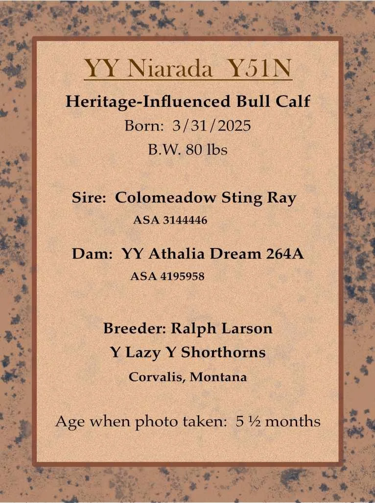 The purpose of this page is to showcase calves that demonstrate the increasing quality and diversity of Heritage Shorthorn Genetics currently being used. The Heritage Shorthorn Society is committed to encouraging expansion of the genetic base of Heritage Shorthorns by utilization of semen from quality older Heritage Shorthorn bulls. A new calf will be featured every 1-2 months on the Calf of the Month Page.