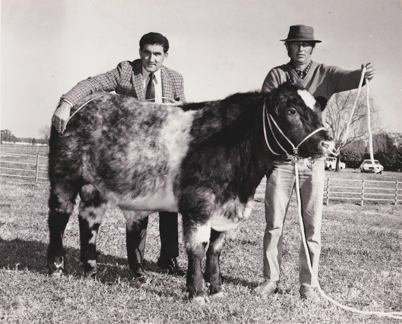 Super Flag was a breed changer bull who weighed 438 kgs (965 lbs) at 8 months of age and went on to weigh almost 1200 kgs (2600 lbs) at maturity. There have been many stories as to how Flag came to exist including that he was part Charolais. The truth is both Mandalong Super Flag and Mandalong Super Elephant were sired by classic dual purpose Milking Shorthorn bulls that Rick purchased at a dairy dispersal sale in New South Wales because he realized that something had to be done to resurrect the popularity of Shorthorns and compete in the commercial marketplace. The bulls he purchased were even larger than Flag and Super Elephant. Dual Purpose Shorthorns, which in one sense were the original Shorthorns, were often huge cattle that were utilized in many different ways. I will leave that discussion for another day. Flag was thought by many Shorthorn breeders to be the genesis for the E226X double muscling gene here in Canada. I think all the negative stories about Rick, Flag, and the Mandalong herd were a combination of jealousy and the lack of knowledge. Because I am a “trust but verify” person, I actually had all possible genetic tests done on Super Flag, including the breed assignment test, before anyone had even bothered to ferret out the truth. As expected Flag was negative on all genetic defect tests and came back 99.9% Shorthorn which is the highest purity number that can be achieved with breed assignment testing. Super Flag demonstrates the value of Heritage Shorthorns today because he effectively reversed the size reduction that had become a prominent feature of the Shorthorn breed—a trait that is raising its “ugly head” again in Modern Shorthorns.