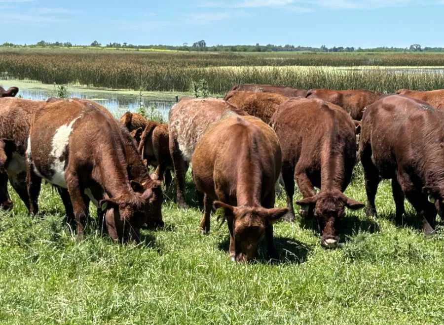 It had been almost 30 years since we previously visited Argentina. At that time we were only in the Suffolk sheep business so cattle ranches had not been on our list of places to visit. Many changes to Argentina were expected and we were not disappointed when we took a trip to Argentina this November (2025). Since almost all of this new trip was in rural Argentina, Sue’s ability to speak Spanish was extremely helpful in navigating the many cultural differences and gleaning additional insight into the thinking of the average Shorthorn breeder in Argentina. During our trip we transversed almost 2000 miles in our rental car. When we initially traveled SW from Buenos Aries we noticed a lot of water in fields. As suspected they were having a very wet Spring (November in the Southern Hemisphere) which at times made the driving “interesting” particularly since a number of the rural roads were dirt roads. After several recent dry years, the wet Spring also accounted for the very lush pastures we saw everywhere.