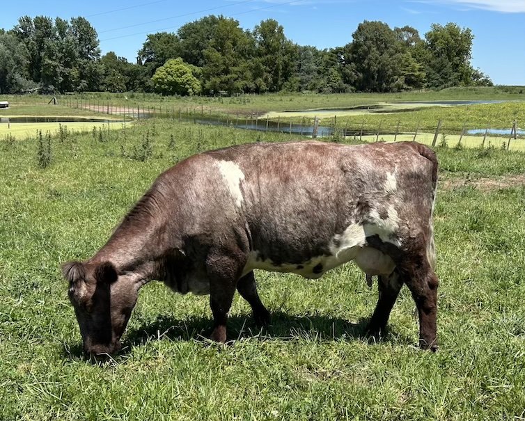 He values cows that are fertile and do well just on pasture. He also values longevity and told a story about a bull that had been bred and used by his father for several years, sold to additional Shorthorn breeders, and then was again up at auction at 17 years of age. His father recognized the name of the bull and was astounded that the bull was still alive. The bull continued to breed cows until he died at 23 years of age.